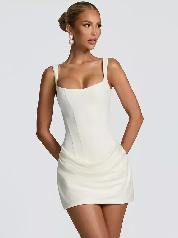 O Vestido Demetra® é uma peça de alta costura que celebra a forma feminina. Com seu decote reto e recortes verticais, ele garante um ajuste perfeito que modela o corpo com sofisticação. O toque dramático fica por conta do drapeado na saia e, principalmente, da amarração posterior estilo espartilho, que permite o ajuste ideal e um visual inesquecível.